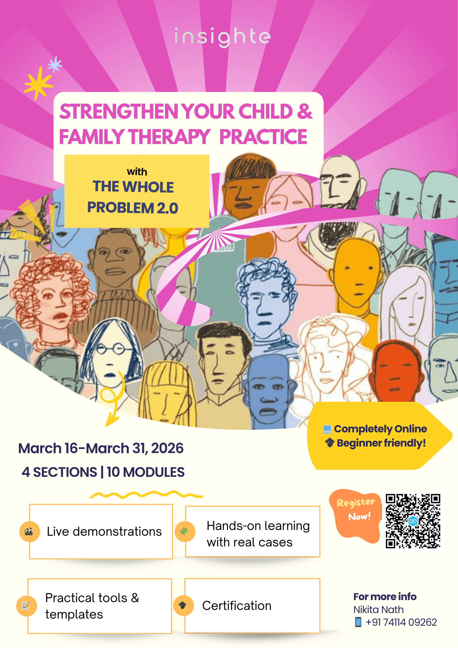 Led by child and family counseling experts from Insighte, along with experienced academic professionals and industry practitioners, this online program is designed for psychology students, practicing therapists, counselors, and educators who wish to deepen their understanding of children and families. Through a dynamic blend of theory, reflection, and practice, participants gain practical tools and insights to enhance their professional work and create meaningful impact in real-world settings.